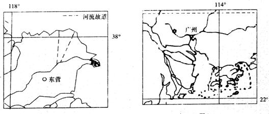 材料一 黄河三角洲略图(图9)和珠江三角洲略图(图10)