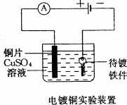 电镀是应用电解原理在某些金属表面镀上一薄层其他金属或合金的过程。