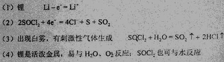 的一极是负极,故Li是负极,发生的电极反应式为Li-e-=Li+;(2)SOCl2电池反应中得电子为正极反应物,其电极反应式为