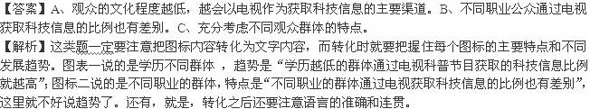 9.下面的图表 一和图表二,是有关机构对我国不同群体通过电视获取科技信息情况的调查:请根据图表反映的情况,补充下面义段中A、B、C处空缺的内容(不出现数字),使上下文语意连贯。