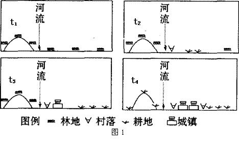 图1为一组剖面示意图,反映了我国华北某地区土地利用状况由t1时期至t4时期的历史变化过程(t1时期至t4时期气候变化甚微,可忽略不计;图中河流断面位于中游处)。据此回答1-2题。
