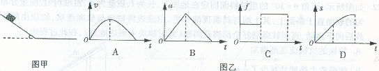 16.如图甲所示,物体沿斜面由静止滑下,在水平面上滑行一段距离后停止,物体与斜面和水平面间的动摩擦因数相同,斜面与水平面平滑连接。图乙中v、a、f和s分别表示物体速度 大小、加速度大小、摩擦力大小和路程。图乙中正确的是
