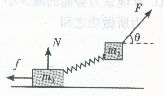 如图所示,质量分别为m1、m2的两个物体通过轻弹簧连接,在力F的作用下一起沿水平方向做匀速直线运动(m1在地面,m2在空中),力F与水平方向成θ角。则m1所受支持力N和摩擦力f正确的是