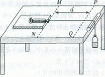 (1)某同学设计了如图所示的装置来探究加速度与力的关系。弹簧秤固定在一合适的木板上,桌面的右边缘固定一支表面光滑的铅笔以代替定滑轮,细绳的两端分别与弹簧秤的挂钩和矿泉水瓶连接。在桌面上画出两条平行线MN、PQ,并测出间距d。开始时将木板置于MN处,现缓慢向瓶中加水,直到木板刚刚开始运动为止,记下弹簧秤的示数F0,以此表示滑动摩擦力的大小。再将木板放回原处并按住,继续向瓶中加水后,记下弹簧秤的示数F1,然后释放木板,并用秒表记下木板运动到PQ处的时间t。