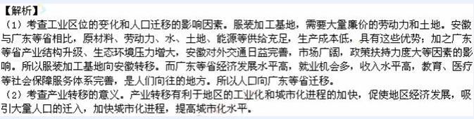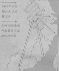 (1)分析图示服装加工基地转移和人口迁移的原因。(15分)