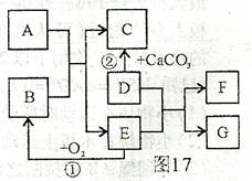 (4分)已知A-G为中学化学中常见物质,它们之间有如图所示的转化关系(部分生成物已略去),其中A、E、F为单质,A、E为固体,E为