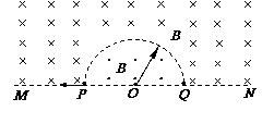 26.(21分)如图所示,直线MN下方无磁场,上方空间存在两个匀强磁场,其分界线是半径为R的半圆,两侧的磁场方向相反且垂直于纸面,磁感应强度大小都为B,现有一质量为m、电荷量为q的带负电微粒从P点沿半径方向向左侧射出,最终打到Q点,不计微粒的重力。
