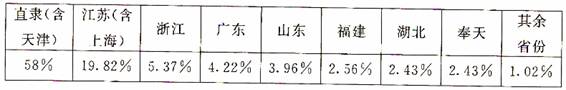 22.据《中国近代经济研究》统计,1912-1919年全国注册工厂在各省分布比例如下:该组统计数据所反映的实质性问题是当时的中国