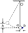 如图所示的单摆做小角度的摆动,摆球a向右摆动到最低点时,恰好与一沿水平方向向左运动的粘性小球b发生碰撞,并粘在一起,且摆动平面不变。已知碰撞前a球摆动的最高点与最低点的高度差为h,摆动的周期为T,a球质量是b球质量的5倍,碰撞前a球在最低点的速度是b球速度的一半。则碰撞后