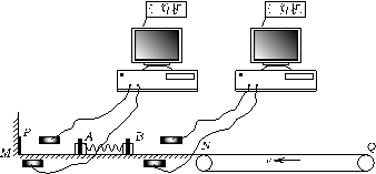 (18分)12. 如图所示,为光电计时器的实验简易示意图,当有不透光物体从光电门间通过时,光电计时器就可以显示物体的挡光时间,实验中所选用的光电门传感器可测的最短时间为0.01ms.光滑水平导轨MN上放两个相同物块A和B,其宽度a =3.0×10-2m,左端挡板处有一弹射装置P,右端N处与水平传送带平滑连接,今将挡光效果好,宽度为d =3.6×10-3m的两块黑色磁带分别贴在物块A和B上,且高出物块,并使高出物块部分在通过光电门时挡光.传送带水平部分的长度L =8m,沿逆时针方向以恒定速度v =6m/s匀速传动.物块A、B与传送带间的动摩擦因数