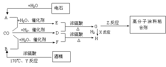 16.(16分) CO不仅是家用煤气的主要成分,也是重要的化工原料。美国近年来报导了一种低温低压催化工艺,把某些简单的有机物经“羰化”反应后可以最后产生一类具有优良性能的装饰性高分子涂料、粘合剂等。如下图所示: