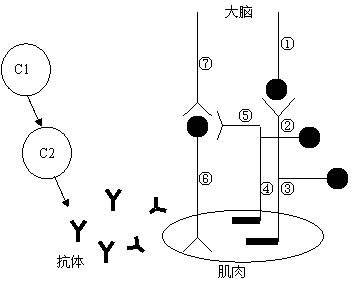 ⑶重症肌无力是自身免疫病,多数患者的免疫系统误将自身肌肉细胞膜(突触后膜)上的神经递质受体当作 ,产生的自身抗体攻击了此类神经递质受体,从而神经冲动传递受阻,肌肉收缩无力,图中免疫细胞C2的名称为 。