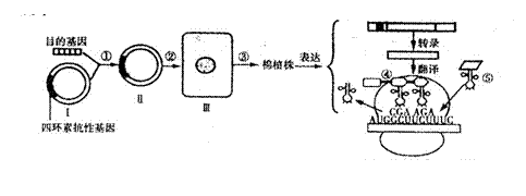 Ⅰ.下图表示科学家通过基工程培育抗虫棉时,从苏云金芽孢杆菌中提取抗虫基,因“放入”棉花细胞中与棉花的DNA分子结合起来而发挥作用的过程示意图。请据图回答下列有关问题: