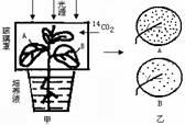 9.下面的图甲是研究生长素生理作用的实验装置,玻璃罩内充满14CO2。选取生长良好、基本相同的叶片A、B,分别用适宜浓度的生长素、蒸馏水处理,一段时间后对A、B叶片内的同位素含量进行检测,结果如图乙所示(黑点的疏密表示同位素含量的多少)。下列叙述错误的是