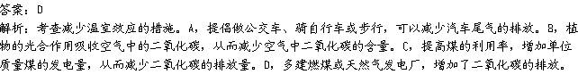 12.联合国气候大会于2009年12月7日在丹麦首都哥本哈根召开,全球190多个国家代表参与这个为期两周的大会,争取达成一项联合国抑制全球变暖新协议。下列做法不利于减少温室气体排放的是( )