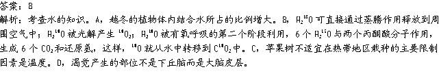 解析:考查细胞代谢、细胞分裂的知识。B,细胞分裂活动减慢,呼吸作用减弱,其体内自由水的含量应降低.