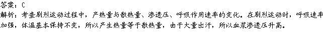 16.北京时间2009年8月17日凌晨3点45分,2009年世界田径锦标赛男子百米的决赛,牙买加飞人博尔特以9秒58获得冠军,不可思议地将在北京奥运会创造的原世界记录9秒69提高了0.11秒。在这样的剧烈运动过程中,产热量与散热量相比、体内血浆渗透压、呼吸作用速率较平静时( )