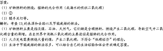 (1)近些年来大气中二氧化碳含量的不断增加的主要原因是 ,自然界中消耗二氧化碳的主要途径是 ;