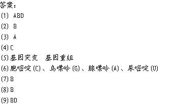 (6)构成甲型H1Nl流感病毒遗传物质的含氮碱基有那几种?(分别写出名称和英文缩写)。