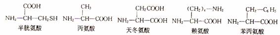 21.某多肽链为199肽,其分子式为CxHyNAOBS2(A>199、B>200),并且由下列5种氨基酸组成。那么这条多肽链彻底水解后得到的赖氨酸、天冬氨酸分子的个数分别是