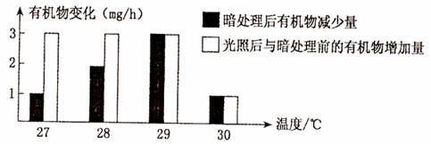 将生长状况相同的等量某种植物的叶片分成4等份,在不同温度下分别暗处理Ih,再光照Ih(光照强度相同),测其有机物变化,得到如下的数据。由此可以得出的结论是