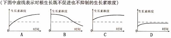 26.将一盆栽植物横放于地,则其水平方向的主根近地一侧生长素浓度变化的曲线为