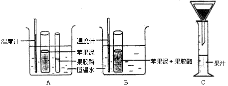 ①将果胶酶与苹果泥分装于不同试管,在10℃水浴中恒温处理10分钟(如图A)。