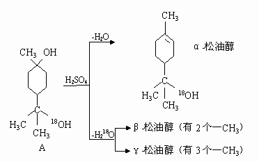 发生消去反应,去氢的位置有两种:一种是去侧链上的氢,得β-松油醇,另一种是去环上的氢,得γ-松油醇。