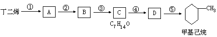 现仅以丁二烯为有机原料,无机试剂任选,按下列途径合成甲基己烷: