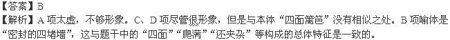 [解析]A中“繁星里的几颗最亮的星星”应改为“昏暗的天空中的几颗星星。”C中“垂柳”以其姿态是无法“拥抱”庄稼的。D用“光焰万丈”和“像晚霞一样灿烂”形容失火,显然感情色彩失当。