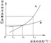 (3)将t2℃的A、B两种物质的饱和溶液各200g,降温至t1℃,析出晶体的质量关系是A______B。