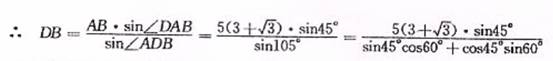 ∠ DAB=90°-60°=30°,∠ DAB=90°-45°=45°,∴∠ADB=180°-(45°+30°)=105°,在△ADB中,有正弦定理得