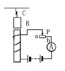 5、如图所示,给电磁铁通电,铁块及弹簧在图中位置静止,当滑动变阻器的滑片向b端滑动时,关于电流表示数和弹簧长度变化情况是( )