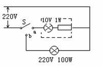 38黑夜看不见开关位置,为此小明设计了如图所示的电路。当单刀双掷开关S合向b时,照明灯亮、指示灯灭,避免指示灯费电;S合向a时,照明灯灭、指示灯亮,显示开关位置(S只能处于这两种状态)。他在图示方框中完成指示灯和电阻丝的连接电路,指示灯规格 为“10V,1W”。