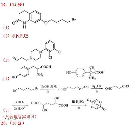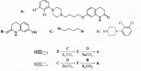 19. (14分)阿立哌唑(A)是一种新的抗精神分裂症药物,可由化合物B、C、D在有机溶剂中通过以下两条路线合成得到。