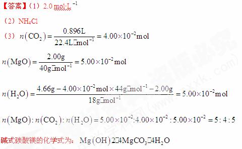 0.896L,通过计算确定碱式碳酸镁的化学式。
