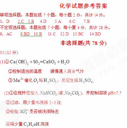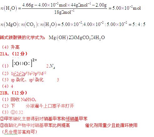 21.(12分)本题包括A、B两小题,分别对应于“物质结构与性质”和“实验化学”两个选修模块的内容。请选定其中一题,并在相应的答题区域内作答。若两题都做,则按A题评分。