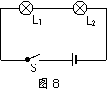 将额定电压相同的两个灯泡L1、L2串联后接入电路中,如图8所示。接通电路后发现L1要亮一些,则下列判断正确的是( )