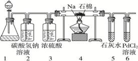 ①若装置6中有黑色沉淀,装置4中的残留固体(只有一种物质)加盐酸有能使石灰水变浑浊的气体放出,则钠与二氧化碳反应的化学方程式为:_____________________。