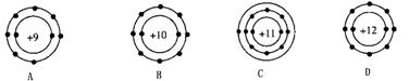 10、(2009·茂名)下列选项中代表离子的是(说明:数字代表质子数,“+”表示原子核所带的电荷,黑点代 表核外电子)( )