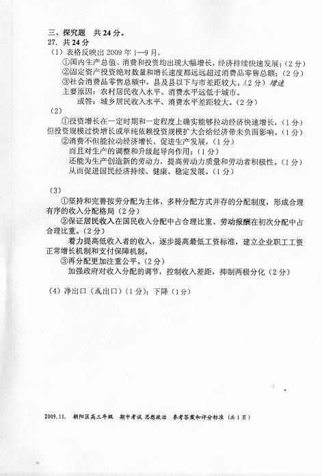 27.2009年10月中下旬,国家统计局公布了一系列经济数据。某班以“消费与国民经济发展”为主题,展开探究性学习。老师给出了一张表格,让同学们以小组为单位进行研究。