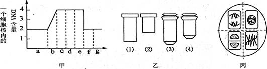 2.下面甲图表示洋葱根尖分生区连续分裂的细胞在各个时期细胞核内DNA含量的测定结果,乙图是一组目镜标有5×和16×字样、物镜标有10×和40×字样的镜头,丙图是在乙图中选用的一组能放大50倍的镜头组合所观察到的图像。欲将丙图视野中处于甲图a时期的细胞移至视野中央放大640倍观察,下列操作中不正确的是![]()
