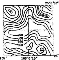 37.乙图大致为甲图从A至B一线附近地形剖面图,图中虚线表示当地一次特大暴雨量分布状况,据图判断中最大暴雨量分布的地区海拔高度约为多少米?