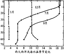 2.读“西大西洋浅海水温季节变化图”,答题。(14分)