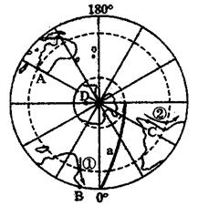 一极地考察考察船从A地沿东南方向到达B地,到达之日,B地刚好出现极昼现象。据此回答6-8题。