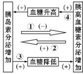 [易错点评] 错因:对拮抗作用概念的本质不清。拮抗作用是指不同激素对某一生理效应(如调节血糖)发挥相反的作用。③、④过程是两种激素对血糖的调解起相反的作用,属于拮抗作用。而①、②过程的作用对象分别是胰岛A、B细胞,其机理是:胰岛素分泌增加,说明此时血糖含量较高,所以,胰岛素一方面在降低血糖(③过程),另一方面要调节胰岛A细胞(①过程),使其分泌量减少,避免血糖升高;胰高血糖素分泌增加,说明此时血糖含量较低,所以,胰高血糖素一方面在升高血糖(④过程),另一方面要调节胰岛B细胞(②过程),使其分泌量增加,以便于血糖顺利进入组织细胞氧化分解供能。抓好基础知识,是正确解答试题的前提。