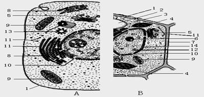 (5) B、C (6) [4] 叶绿体 (7) [13] 中心体 (8) [11] 核糖体