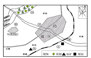 ⑶如果在该地区发展小城镇建设,甲乙丙丁四个村庄发展条件最有利的是 ,请说明理由。(3分)