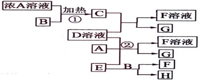 19.(6分)有关物质存在如图所示的转化关系(部分产物已省略)。通常C为气体单质,G为紫黑色固体单质。实验室中,常用固体E在B的催化下加热制取气体单质H。