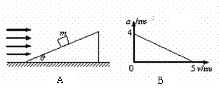 19.如图A.,质量m=1kg的物体沿倾角q=37°的固定粗糙斜面由静止开始向下运动,风对物体的作用力沿水平方向向右,其大小与风速v成正比,比例系数用k表示,物体加速度a与风速v的关系如图B所示。(sin370=0.6, cos370=0.8, g=10m/s2)求: